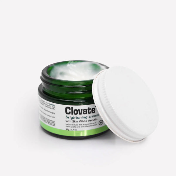 Our light and creamy Clovate Brightening Cream is formulated with a safe and effective Arbutin Complex that reduces dark brown spots while hydrating and protecting against free radicals. It promotes a luminous complexion and restores soft, smooth, and even-toned skin.